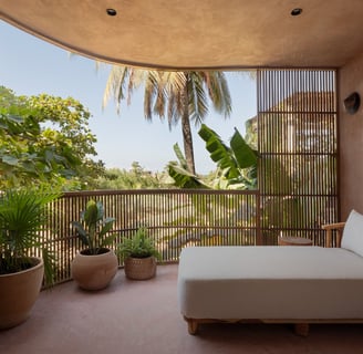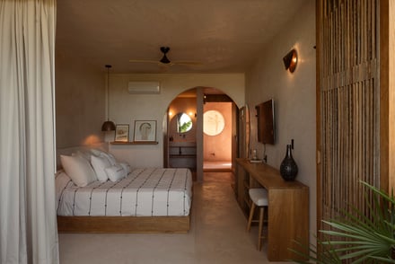 Each room is a sanctuary, where the boundaries between indoor and outdoor living merge seamlessly. The natural materials and carefully curated textures create a calming ambiance that encourages guests to slow down and embrace the present moment. Every detail, from the earthy tones of the walls to the intricate palm bone details, speaks to a deep appreciation of the local environment and culture.