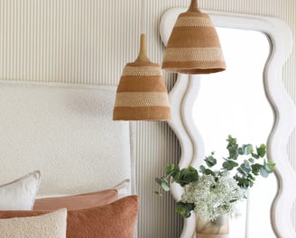 Her Hands celebrates the use of natural and sustainable materials. The pendant lights are crafted from locally sourced sisal and other natural fibers, while the Pulp Collection utilizes recycled waste magazines. These materials reflect the landscape and resources of the artisans' communities, creating products that are both beautiful and conscious.