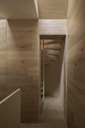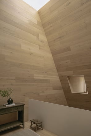 Despite being situated on a compact 4x10 meter plot, Casa Emma establishes a feeling of spaciousness by utilisation of it's deep connection with, and use of natural elements and material selections. The design maximizes the use of zenithal light, allowing natural light to flood the interiors through a central skylight. This clever use of overhead light creates dynamic patterns throughout the day, fostering a calming atmosphere that blurs the line between indoors and outdoors.