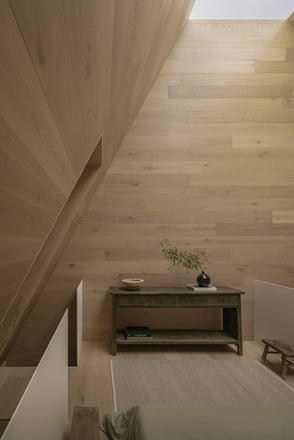 The architectural language of Casa Emma pays homage to traditional Purépecha craftsmanship. The use of chukum plaster on the exterior—a natural finish originating from the Yucatán region—gives the home an earthy and grounded aesthetic. Inside, extensive wood detailing evokes the warmth and familiarity of a traditional Purépecha granary, known locally as a "Troje."